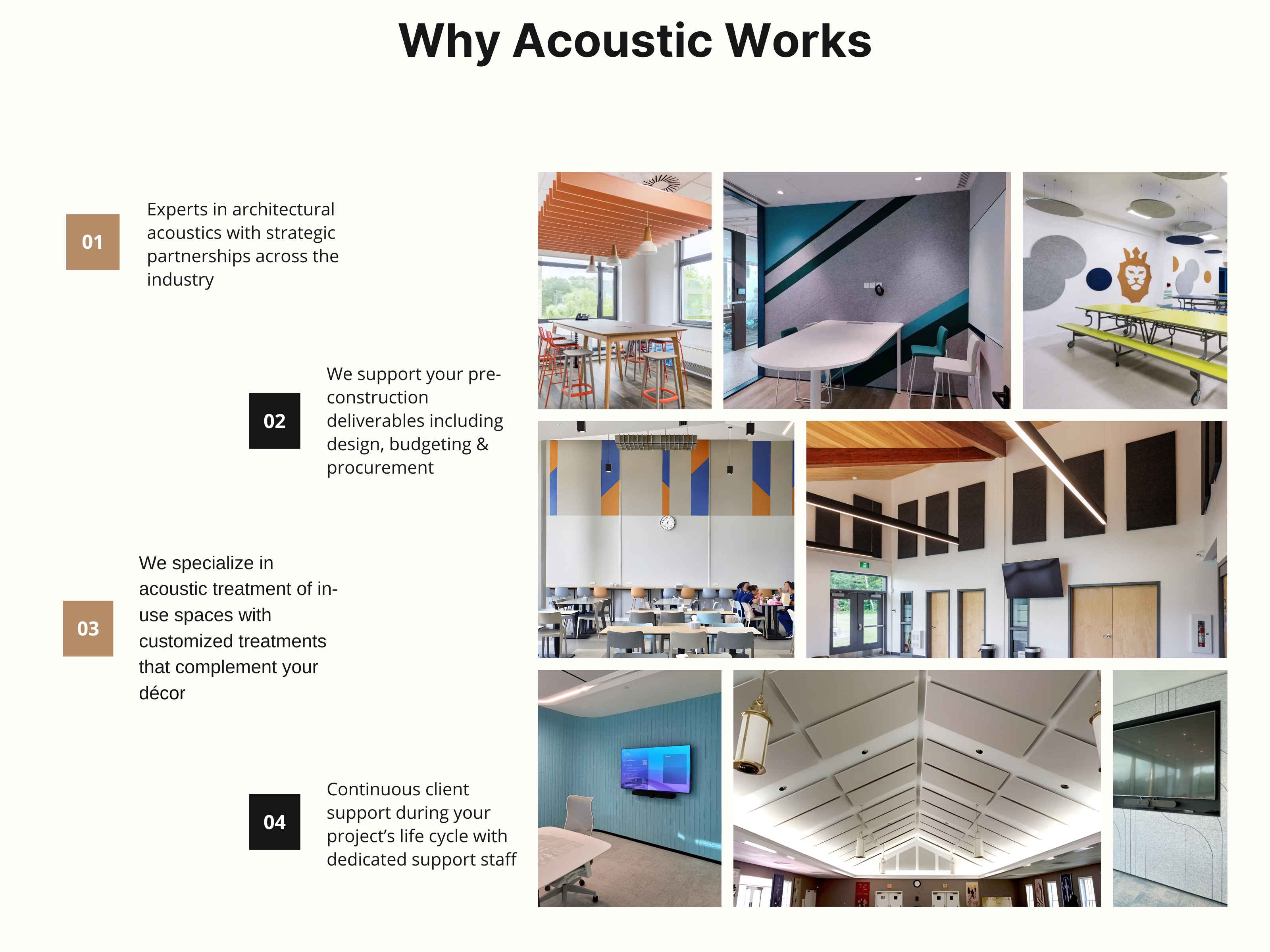 3) We specialize in acoustic treatment of in-use spaces with customized treatments that complement your decor